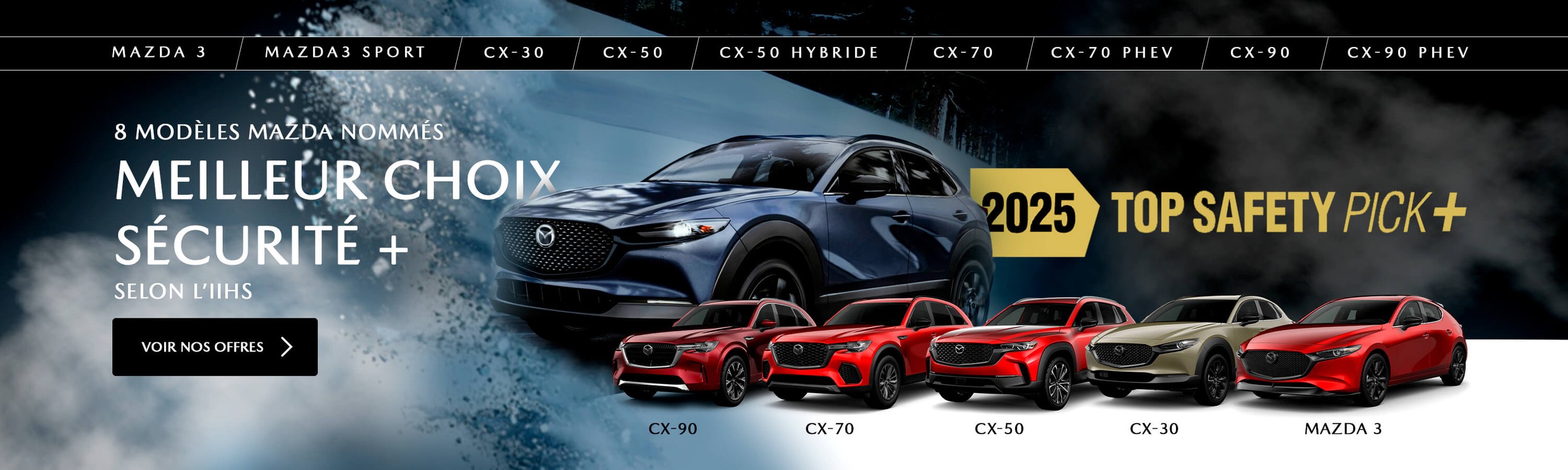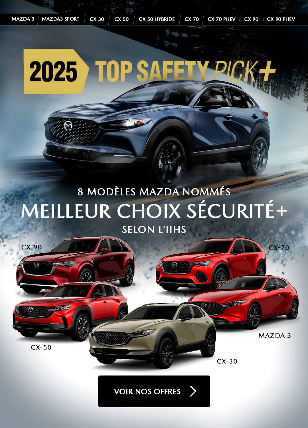 Tous les véhicules Mazda profitent de technologies à la fine pointe, de moteurs fougueux, d’habitacles où règnent le confort, l’ergonomie et les commodités pour que chaque occupant puisse vivre une expérience unique à chaque trajet. Les technologies SKYACTIV qui permettent à chaque véhicule de répondre intuitivement aux commandes du conducteur tout en offrant une économie de carburant supérieure et des émissions réduites, sans jamais compromettre le plaisir de la conduite, c’est ça Mazda.
