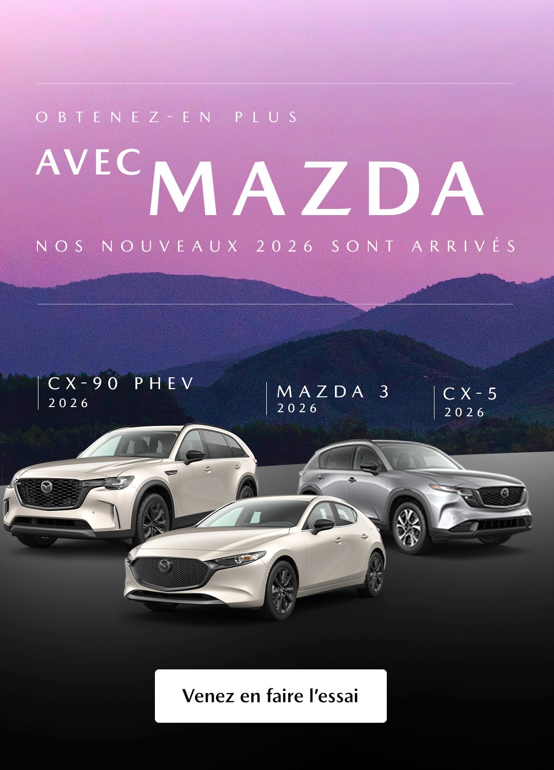 Les VUS Mazda tels que le Mazda CX-90 2024 ou le CX-5 2024, luxueux, puissants, confortables, riches en technologies et en commodités, sont les compléments parfaits pour les familles d’aujourd’hui en quête de polyvalence, d’espace et d’agrément. D’ailleurs, à ce sujet, votre concessionnaire Mazda à Magog accueillera très bientôt dans sa salle d’exposition le très attendu Mazda CX-30 2024, un autre utilitaire compact qui promet d’attirer de nombreux adeptes de ce genre.