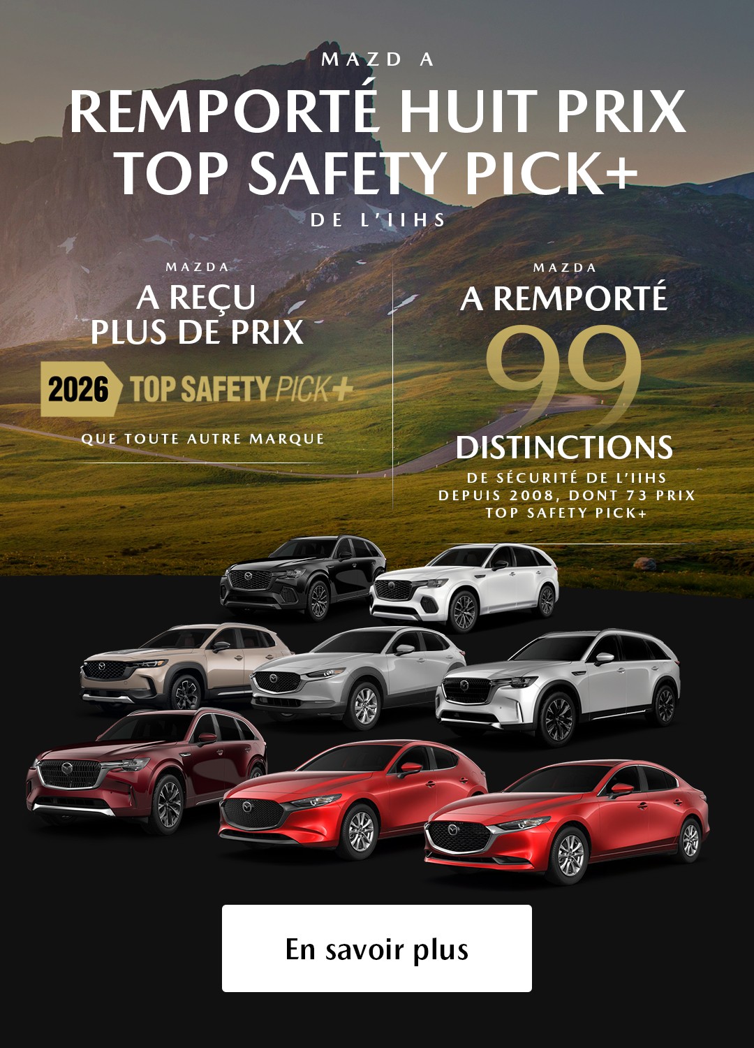 Tous les véhicules Mazda profitent de technologies à la fine pointe, de moteurs fougueux, d’habitacles où règnent le confort, l’ergonomie et les commodités pour que chaque occupant puisse vivre une expérience unique à chaque trajet. Les technologies SKYACTIV qui permettent à chaque véhicule de répondre intuitivement aux commandes du conducteur tout en offrant une économie de carburant supérieure et des émissions réduites, sans jamais compromettre le plaisir de la conduite, c’est ça Mazda.